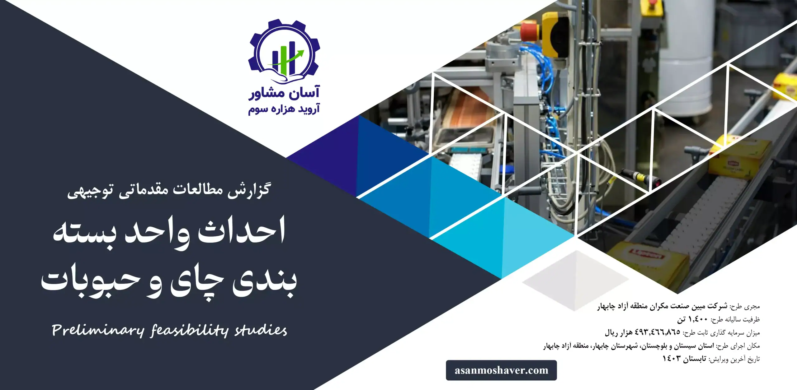 • عنوان پروژه: گزارش مطالعات مقدماتی توجیهی احداث واحد بسته بندی چای و حبوبات