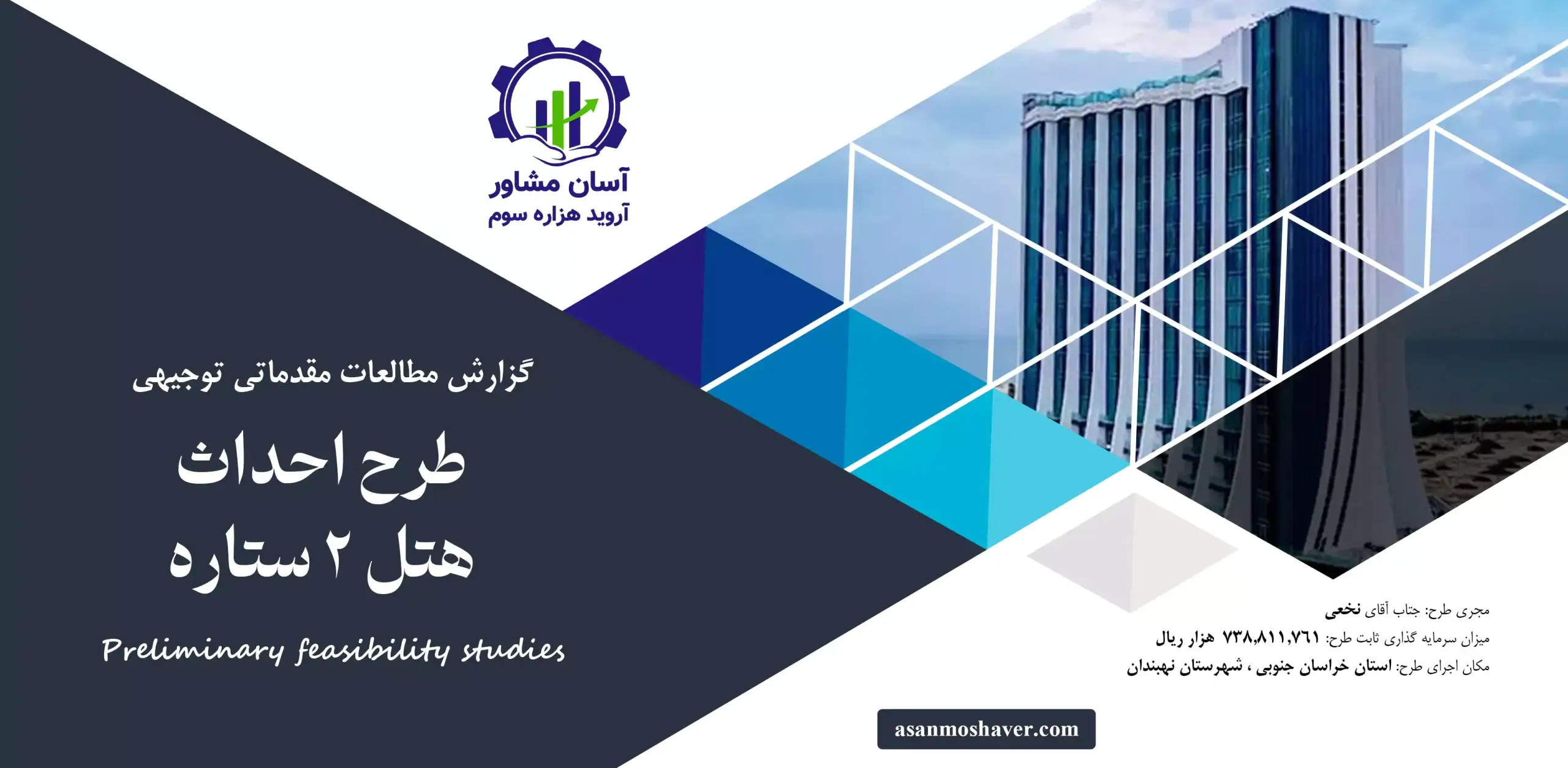 • عنوان پروژه: گزارش مطالعات مقدماتی توجیهی احداث هتل ۲ ستاره