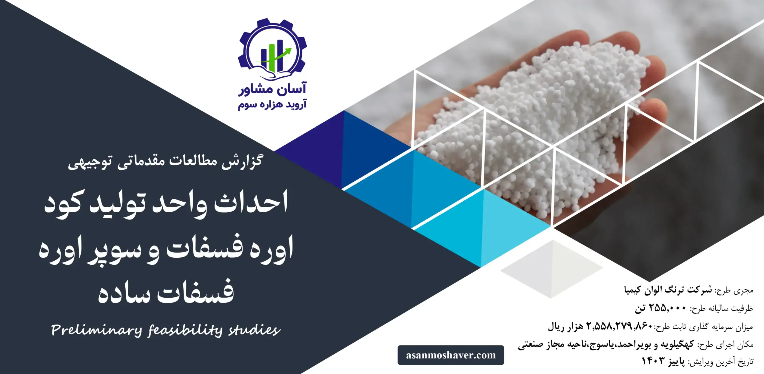 • عنوان پروژه: گزارش مطالعات مقدماتی توجیهی احداث واحد تولید کود اوره فسفات و سوپر اوره فسفات ساده