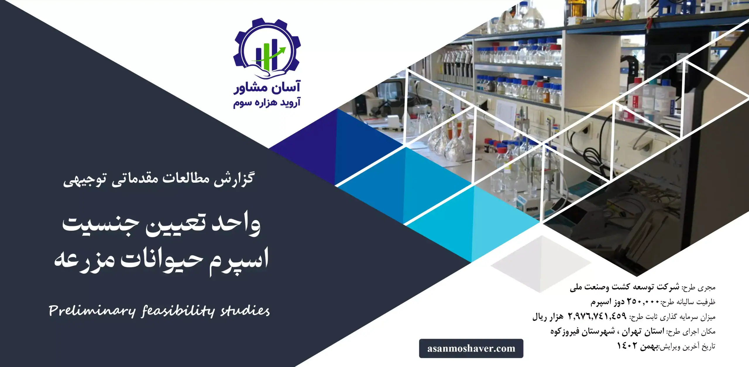 • عنوان پروژه: گزارش مطالعات مقدماتی توجیهی احداث واحد تعیین جنسیت اسپرم حیوانات مزرعه ای